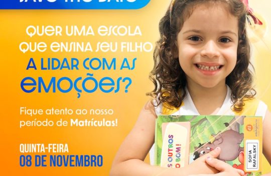 A partir do dia 08 de novembro (terça-feira), nós esperamos por você para compartilhar esta incrível missão de preparar seu filho para os desafios de hoje e do futuro, por meio de uma educação integral, que também ensina a lidar com as emoções e desenvolver habilidades e competências socioemocionais essenciais para uma vida mais saudável.